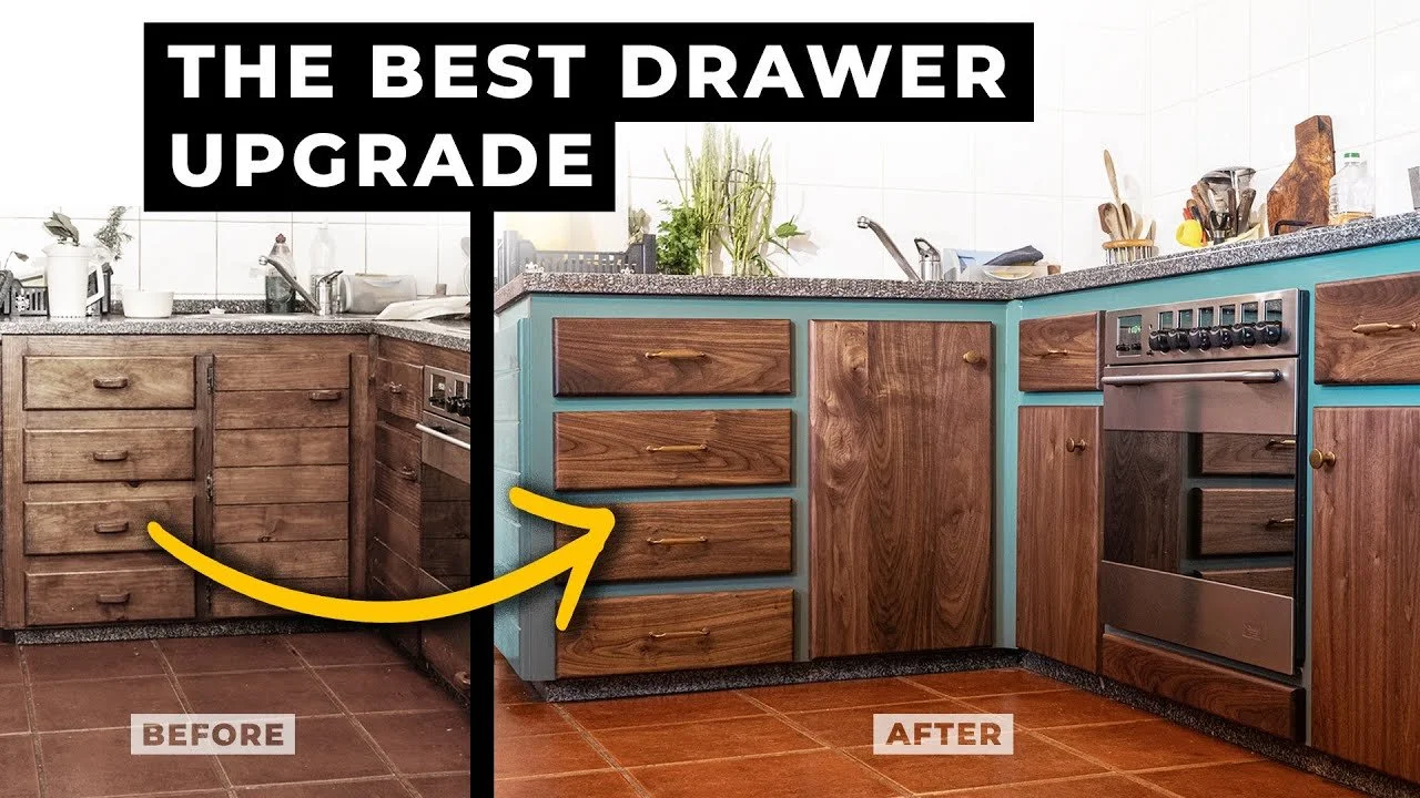In this video, I renovate my grandma's kitchen that had heavy and stiff drawers, not ideal for someone her age. I built new smooth-gliding drawers and gave the cabinets a good refresh along the way.